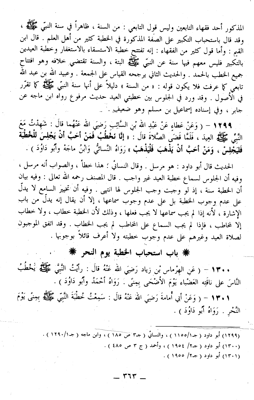 1300 - (عَنْ الْهِرْمَاسِ بْنِ زِيَادٍ - رَضِيَ اللَّهُ عَنْهُ - قَالَ: «رَأَيْتُ النَّبِيَّ - صَلَّى اللَّهُ عَلَيْهِ وَسَلَّمَ - يَخْطُبُ النَّاسَ عَلَى نَاقَتِهِ الْعَضْبَاءَ يَوْمَ الْأَضْحَى بِمِنًى» رَوَاهُ أَحْمَدُ وَأَبُو دَاوُد) .