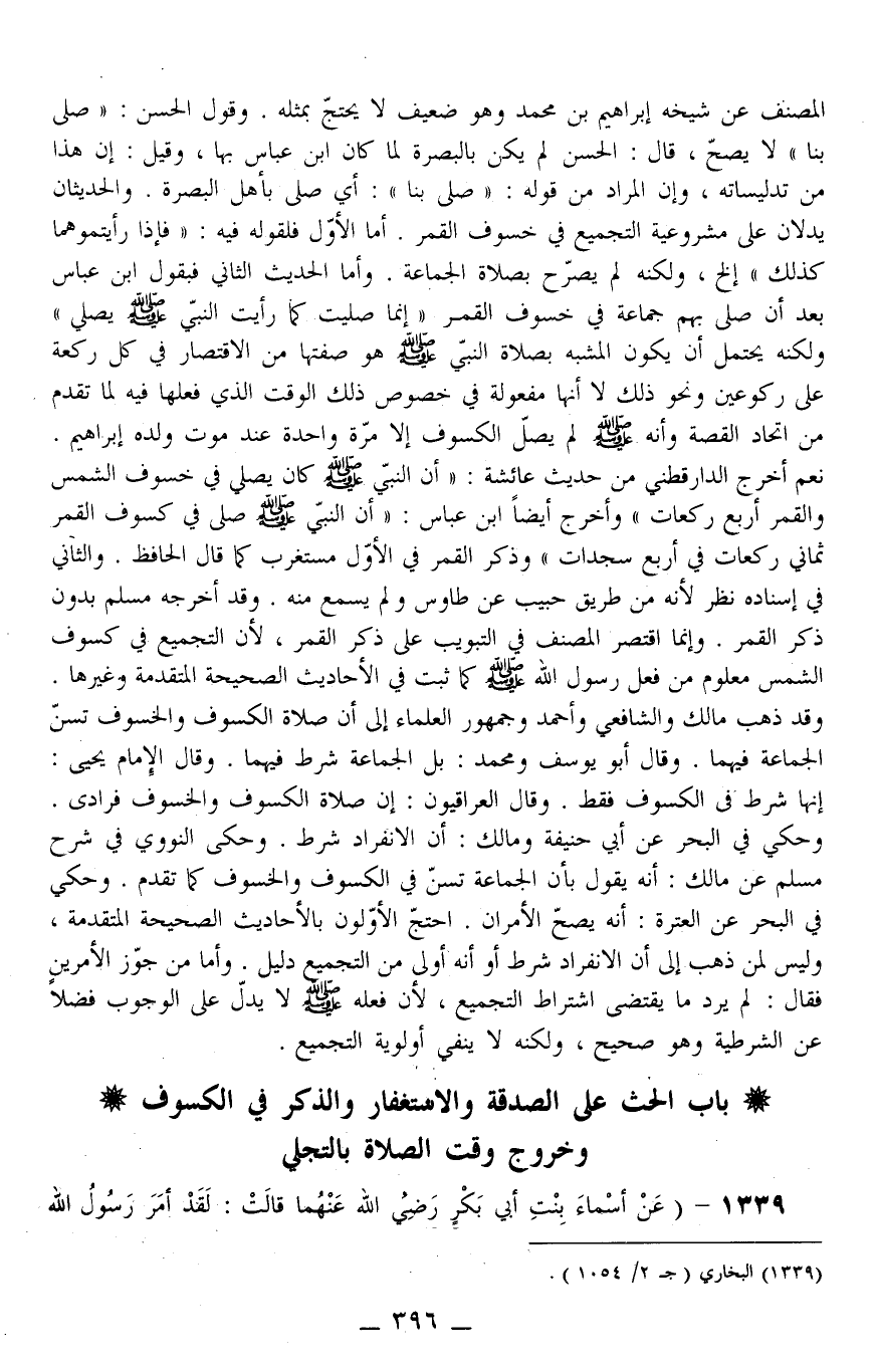 ـــــــــــــــــــــــــــــQالْمُصَنِّفُ عَنْ شَيْخِهِ إبْرَاهِيمُ بْنُ مُحَمَّدٍ وَهُوَ ضَعِيفٌ لَا يُحْتَجُّ بِمِثْلِهِ. وَقَوْلُ الْحَسَنِ: " صَلَّى بِنَا " لَا يَصِحُّ، قَالَ: الْحَسَنُ لَمْ يَكُنْ بِالْبَصْرَةِ لَمَّا كَانَ ابْنُ عَبَّاسٍ بِهَا، وَقِيلَ: إنَّ هَذَا مِنْ تَدْلِيسَاتِهِ، وَإِنَّ الْمُرَادَ مِنْ قَوْلِهِ: " صَلَّى بِنَا ": أَيْ صَلَّى بِأَهْلِ الْبَصْرَةِ.
