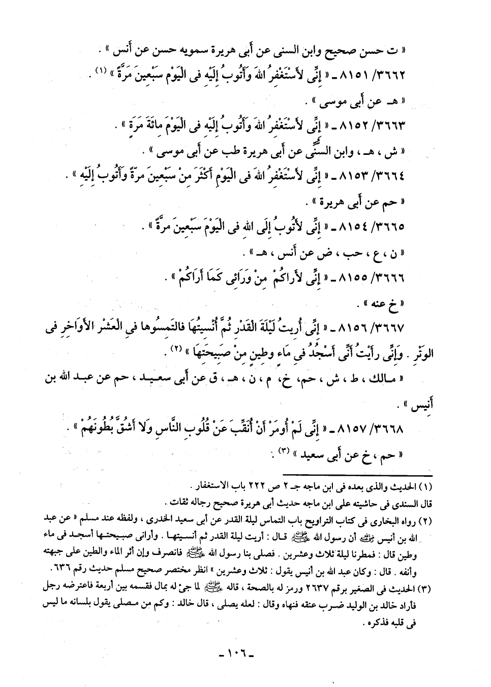 3663/ 8152 - "إنِّى لأَسْتَغْفِرُ اللَّه وَأَتُوبُ إِلَيْهِ في الْيَوْمَ مِائَةَ مَرَةٍ".
