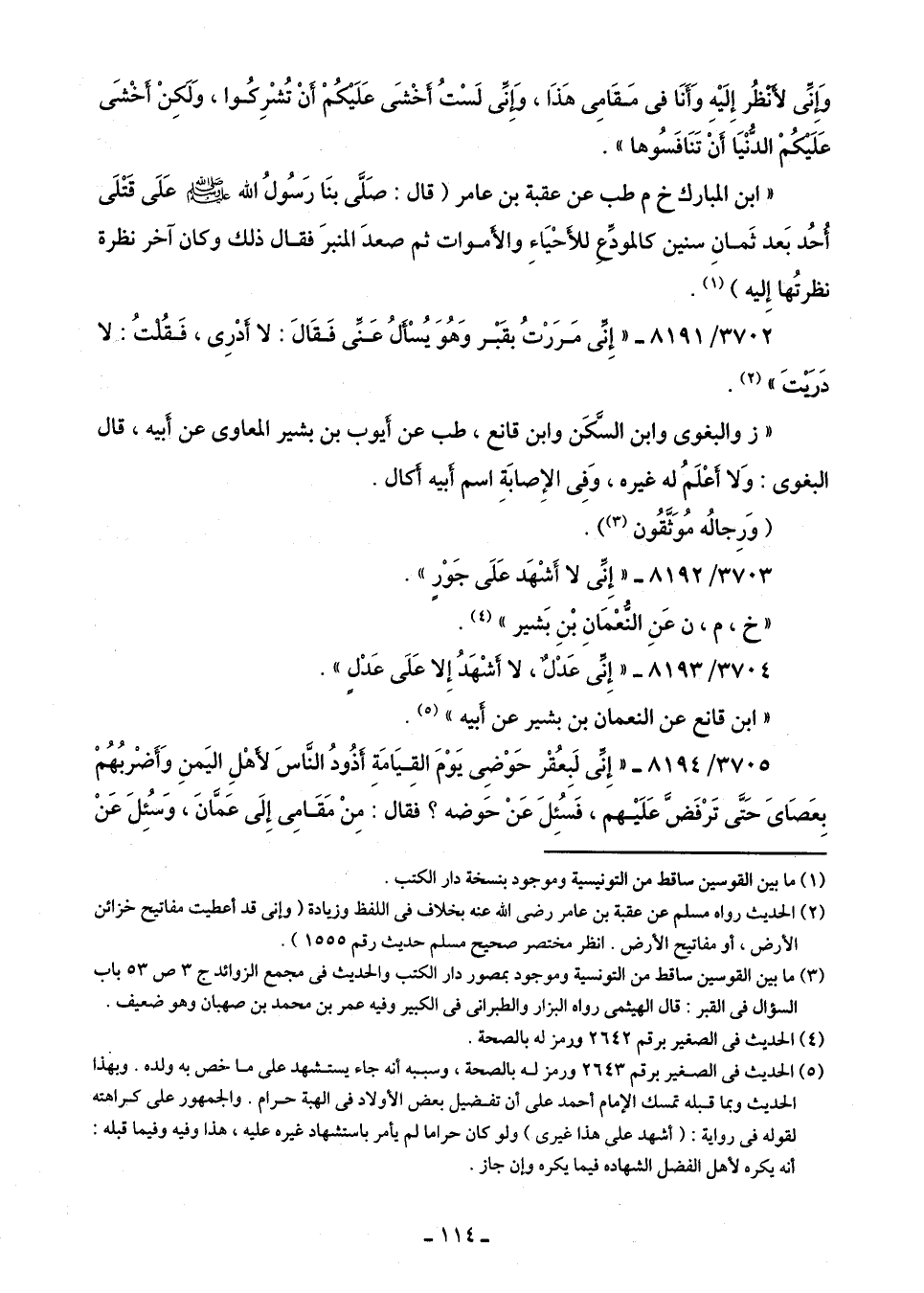 3704/ 8193 - "إِنِّى عَدْلٌ، لا أشْهَدُ إِلا عَلَى عَدْلٍ".