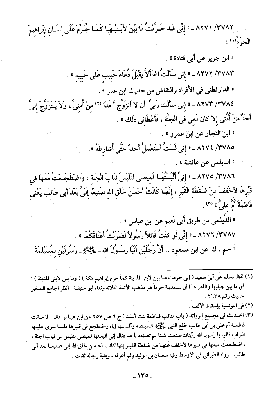 3782/ 8271 - "إِنِّى قَدْ حَرَّمْتُ مَا بَيْنَ لأبَتيْها كَمَا حُرِّمَ عَلَى لسَان إبْراهيمَ الْحرَمُ (¬1) ".