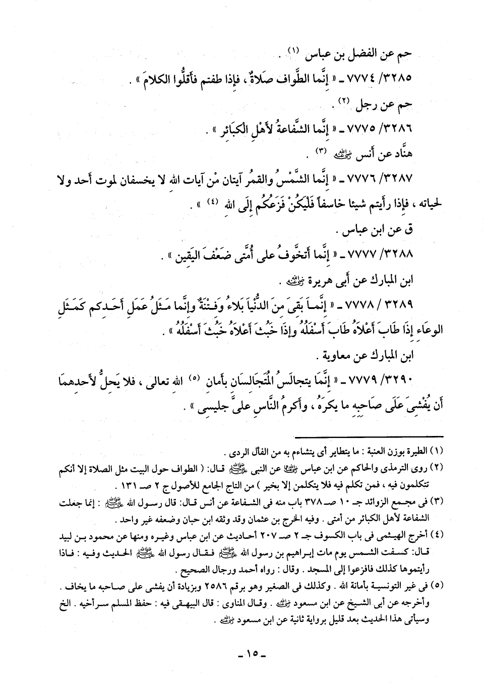 3285/ 7774 - "إِنَّما الطواف صَلاةٌ، فإِذا طفتم فأَقلُّوا الكلامَ".