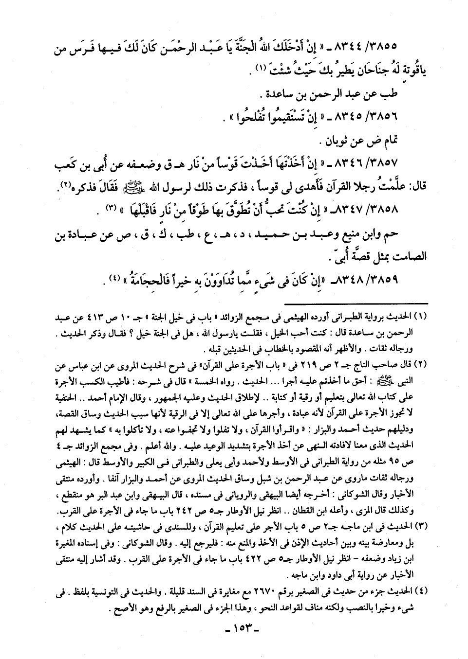 3855/ 8344 - "إِنْ أدْخَلَكَ اللَّهُ الجَنَّةَ يَا عَبْد الرحْمَن كَانَ لَكَ فيها فَرَس من ياقُوتةٍ لَهُ جنَاحَان يَطيرُ بكَ حَيْثُ شئْتَ (¬1).