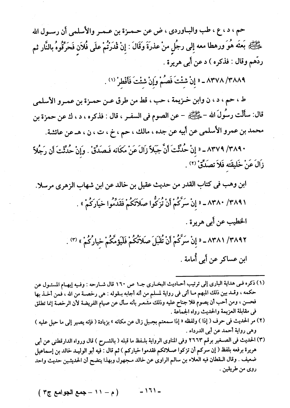 3889/ 8378 - "إِنْ شِئْتَ فَصُمْ وَإِنْ شِئْتَ فَأَفْطِرْ (¬1).