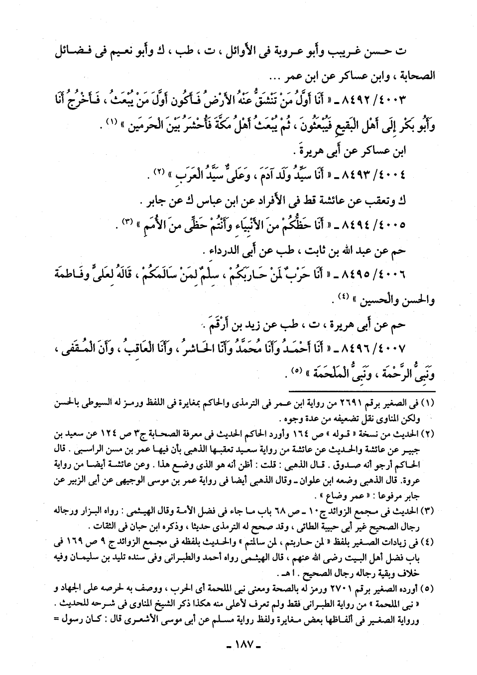 4004/ 8493 - "أنَا سيِّدُ وَلَد آدَمَ، وَعَلىٌّ سَيَّدُ العَرَبِ" (¬2).