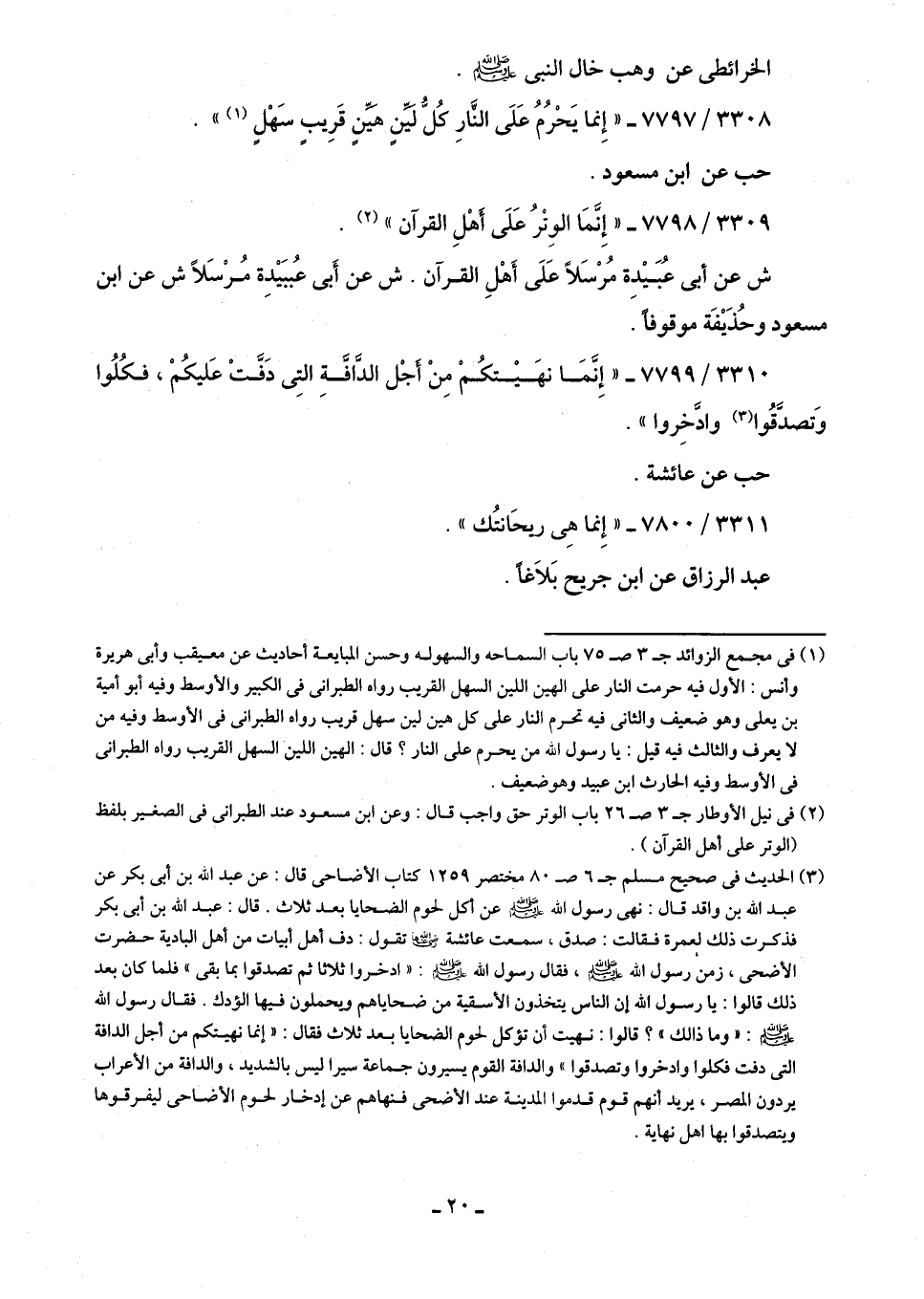 3309/ 7798 - "إِنَّمَا الوِتْرُ عَلَى أهْلِ القرآن" (¬2).