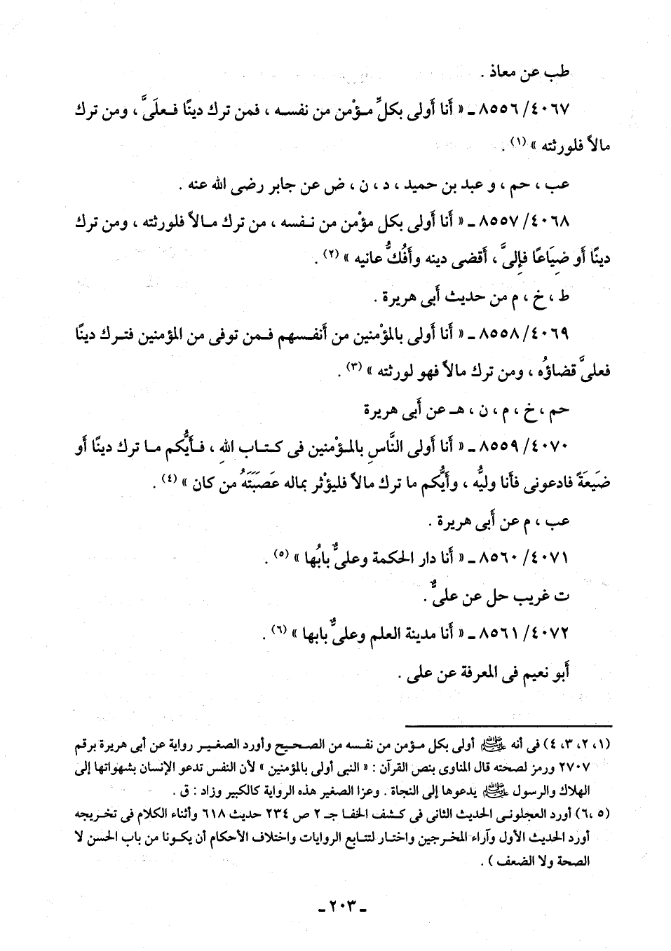 4067/ 8556 - "أَنَا أولى بكلِّ مؤْمن من نفسه، فمن ترك دينًا فعلَىَّ، ومن ترك مالًا فلورثته" (¬1).