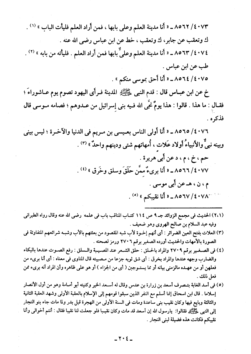 4073/ 8562 - "أَنا مدينة العلم وعلى بابها، فمن أَراد العلم فليأت الباب" (¬1).