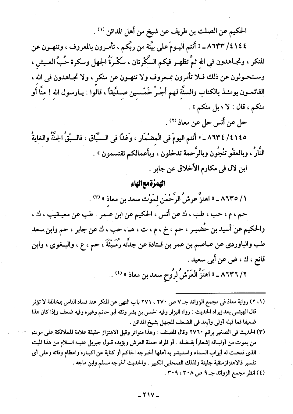 2/ 8636 - "اهتَزَّ العَرْشُ لِرُوحِ سعد بن معاذ" (¬4).
