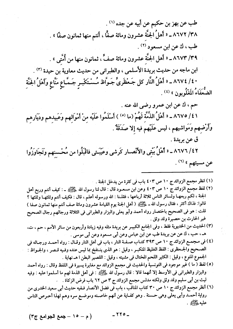 38/ 8672 - "أَهلُ الجنَّةِ عشرون ومائة صفًّا، أَنتم منها ثمانون صفًا".