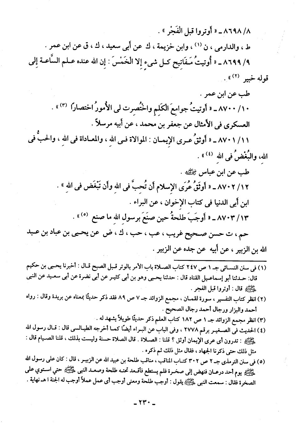 11/ 8701 - "أَوثقُ عرى الإِيمان: الموالاة في اللَّهِ، والمعاداة في اللَّهِ، والحبُّ في اللَّهِ، والبُغْضُ في اللَّهِ (¬4) ".