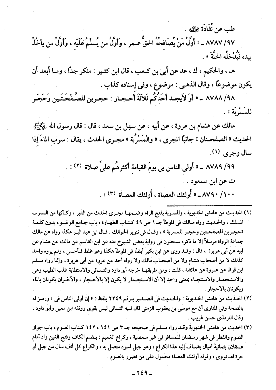 97/ 8787 - "أَوَّلُ مَنْ يُصَافحُهُ الحقُّ عمر، وَأوَّلُ من يُسلَّمُ عَلَيْه، وَأوَّلُ من يأخُذُ بيده فَيُدْحْلُه الجنَّةَ".