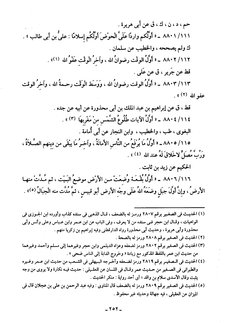 111/ 8801 - "أَوَّلُكم واردًا عَلَىَّ الْحوْضَ أوَّلُكُم إِسلامًا: علىُّ بن أَبى طالب".