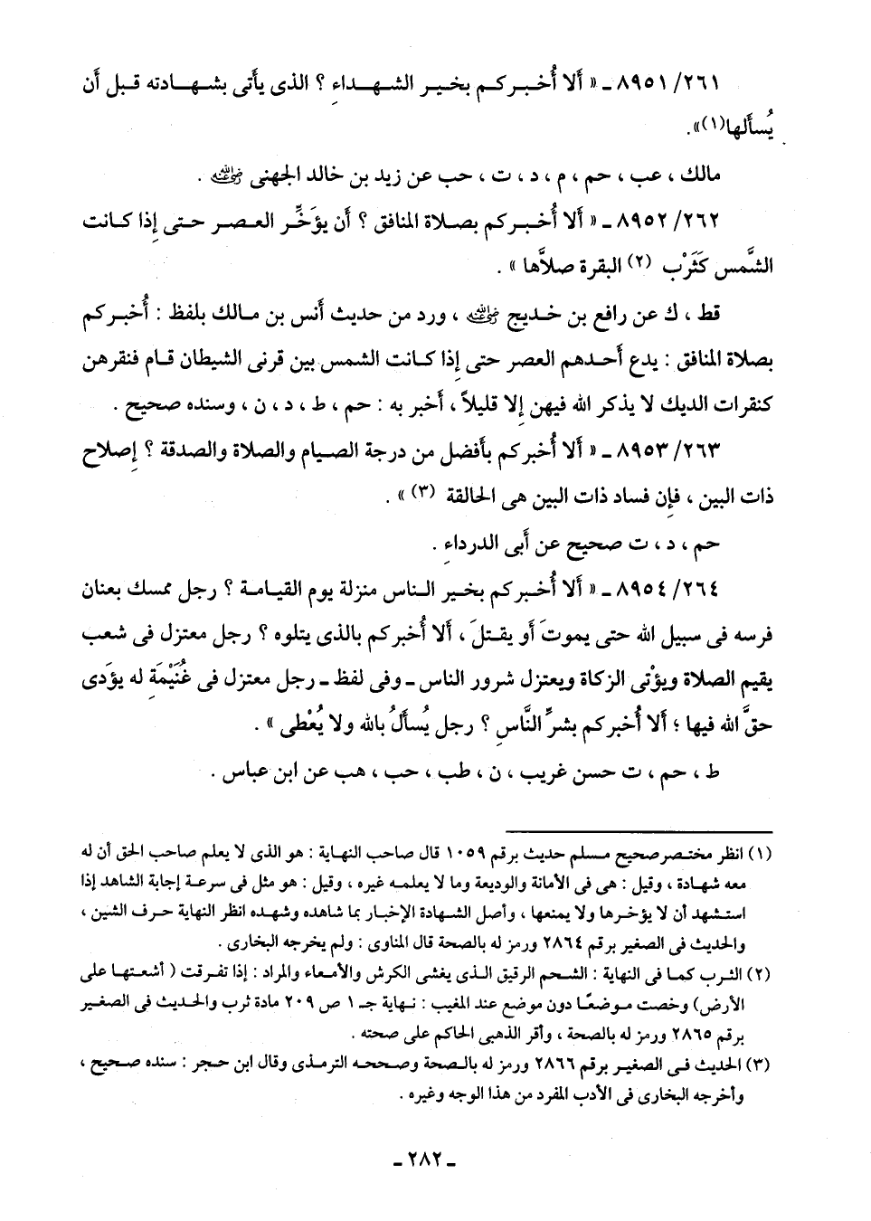261/ 8951 - "أَلا أُخبركم بخير الشهداءِ؟ الذى يأتى بشهادته قبل أَن يُسأَلها (¬1) ".