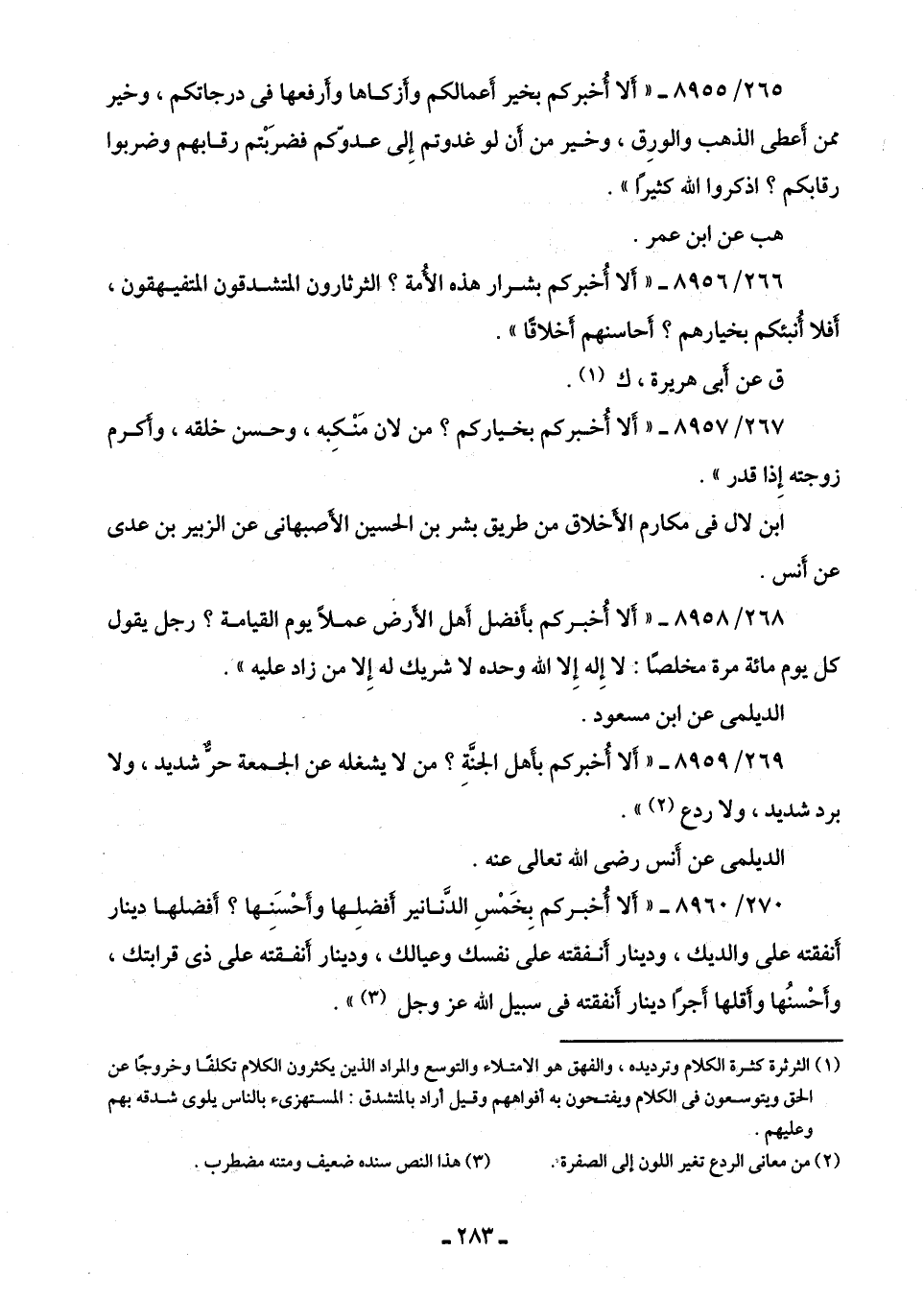266/ 8956 - "أَلا أُخبركم بشرار هذه الأمة؟ الثرثارون المتشدقون المتفيهقون، أفلا أنبئكم بخيارهم؟ أحاسنهم أخلاقًا".