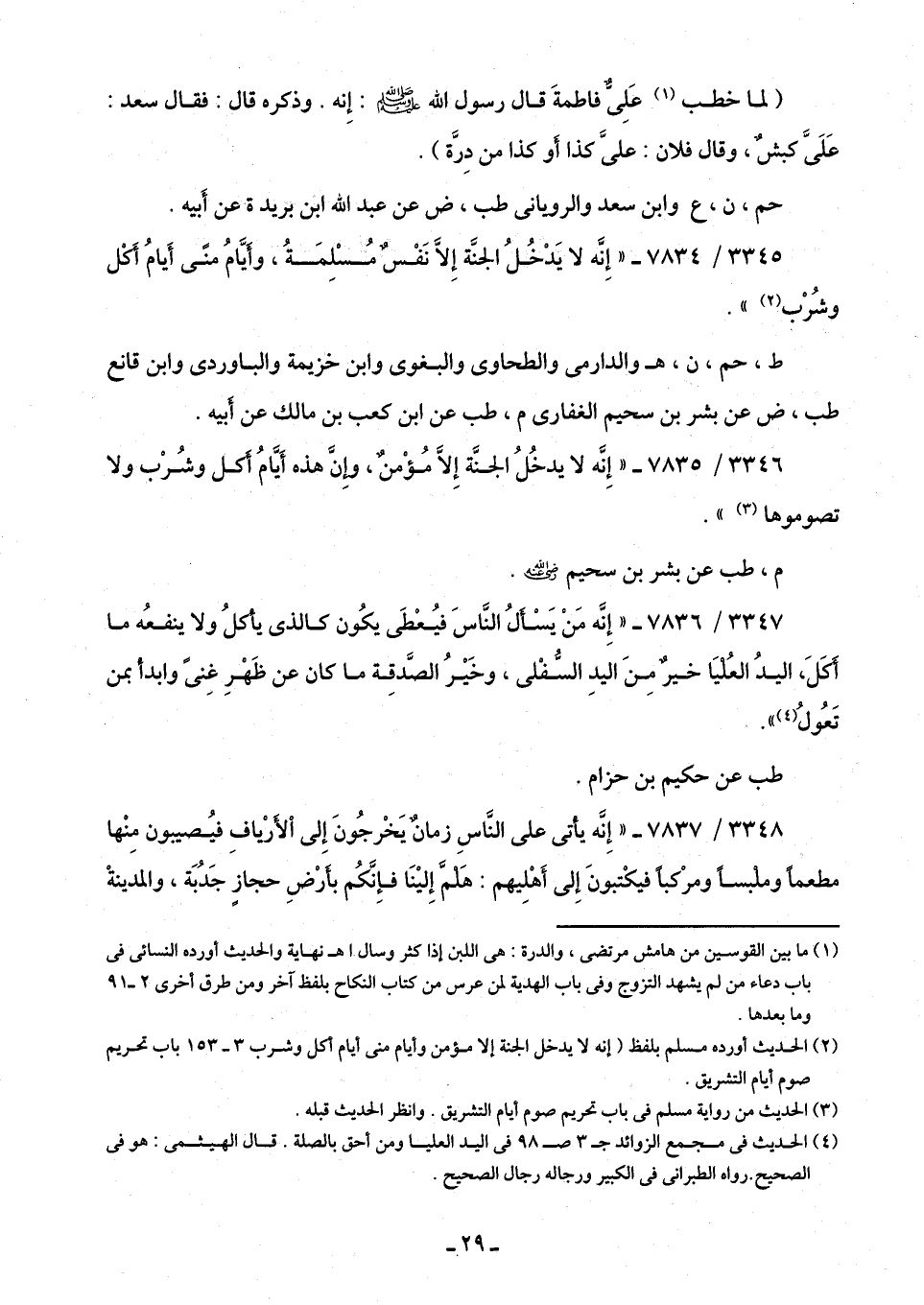 3346/ 7835 - "إِنَّه لا يدخُلُ الجنَّة إِلَّا مُؤْمنٌ، وإِنَّ هذه أَيامُ أَكل وشُرْب ولا تصوموها (¬3) ".