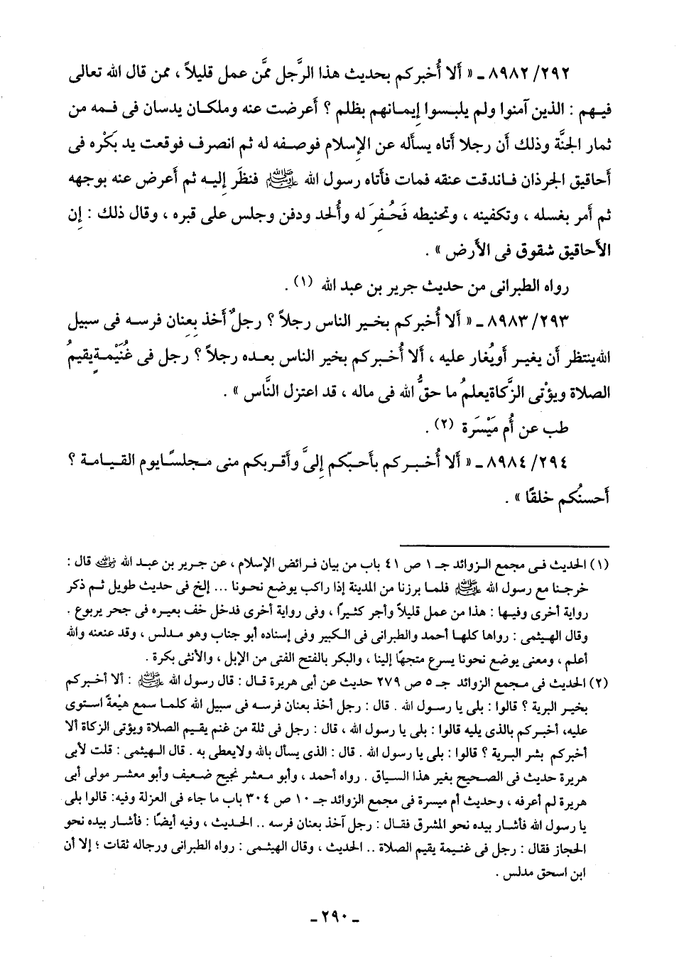 293/ 8983 - "أَلا أُخبركم بخير الناس رجلًا؟ رجلٌ أخذ بِعِنان فرسه في سبيل اللَّه ينتظر أن يغير أو يُغار عليه، أَلا أُخبركم بخير الناس بعده رجلًا؟ رجل في غُنَيْمةٍ يقيمُ الصلاة ويؤْتى الزَّكاة يعلمُ ما حقُّ اللَّه في ماله، قد اعتزل النَّاس".