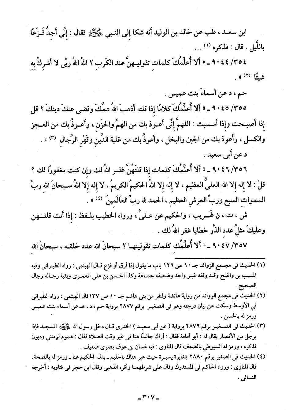 354/ 9044 - "أَلا أُعلِّمُكَ كلماتٍ تقوليهنَّ عند الكَرب؟ اللَّهُ اللَّهُ ربِّى لا أَشرِكُ بِهِ شيئًا (¬2) ".