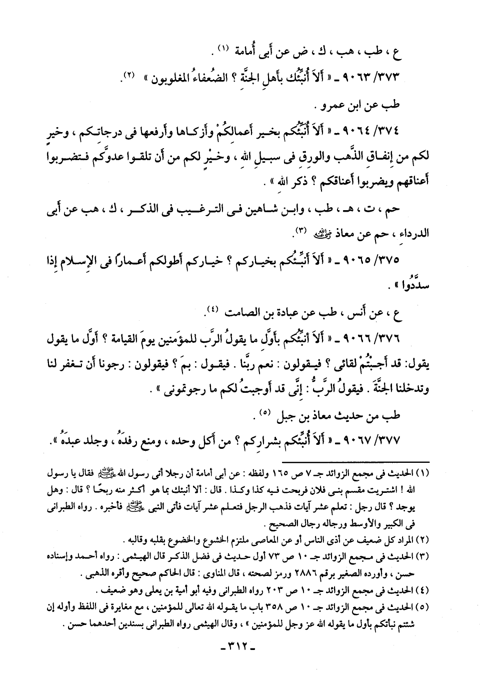 376/ 9066 - "ألَا أنبِّئُكم بأَوَّلِ ما يقولُ الرَّب للمؤَمنين يومَ القيامة؟ أَوَّل ما يقول يقول: قد أجبْتُمْ لقائى؟ فيقولون: نعم ربنا. فيقول: بمَ؟ فيقولون: رجونا أَن تغفر لنا وتدخلنا الجنَّةَ. فيقولُ الرَّب: إِنِّى قد أوجبتُ لكم ما رجوتمونى".