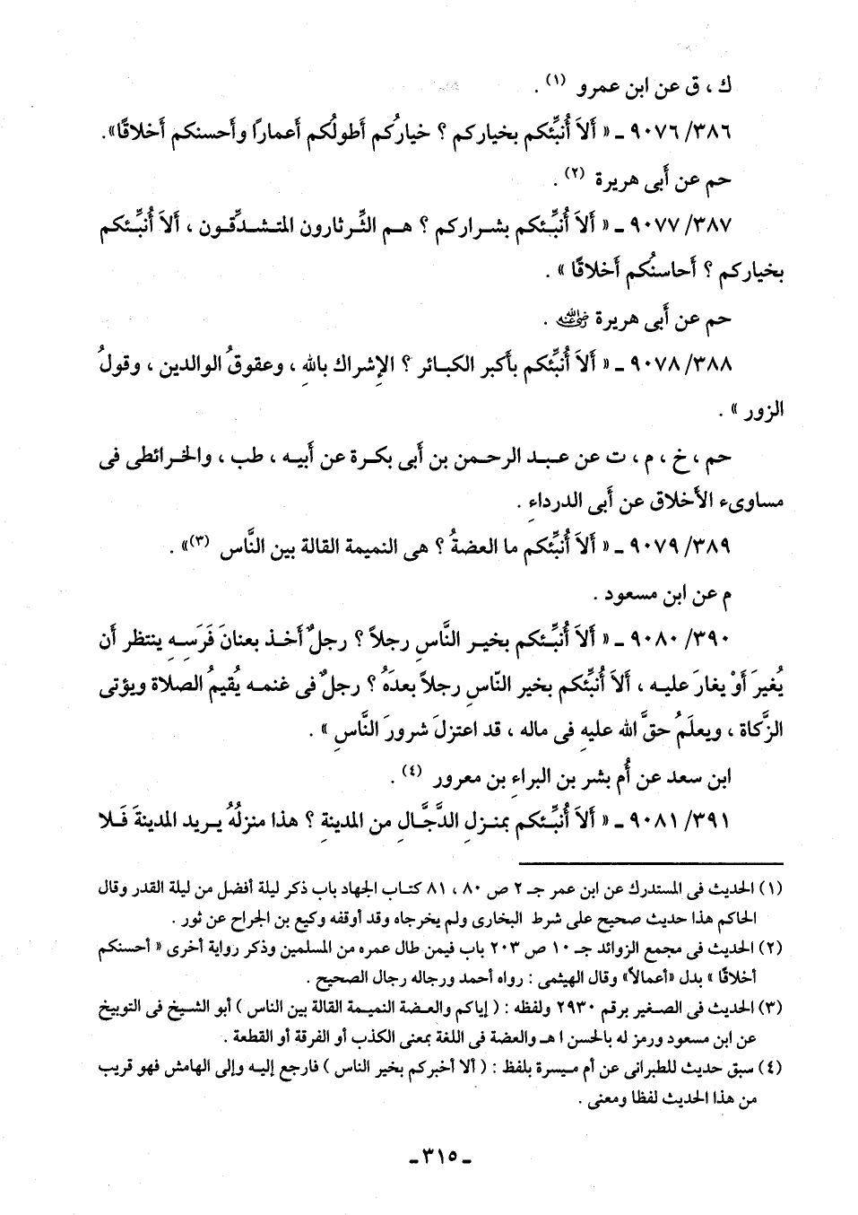 389/ 9079 - "أَلَا أُنبِّئكم ما العضةُ؟ هى النميمة القالة بين النَّاس (¬3) ".