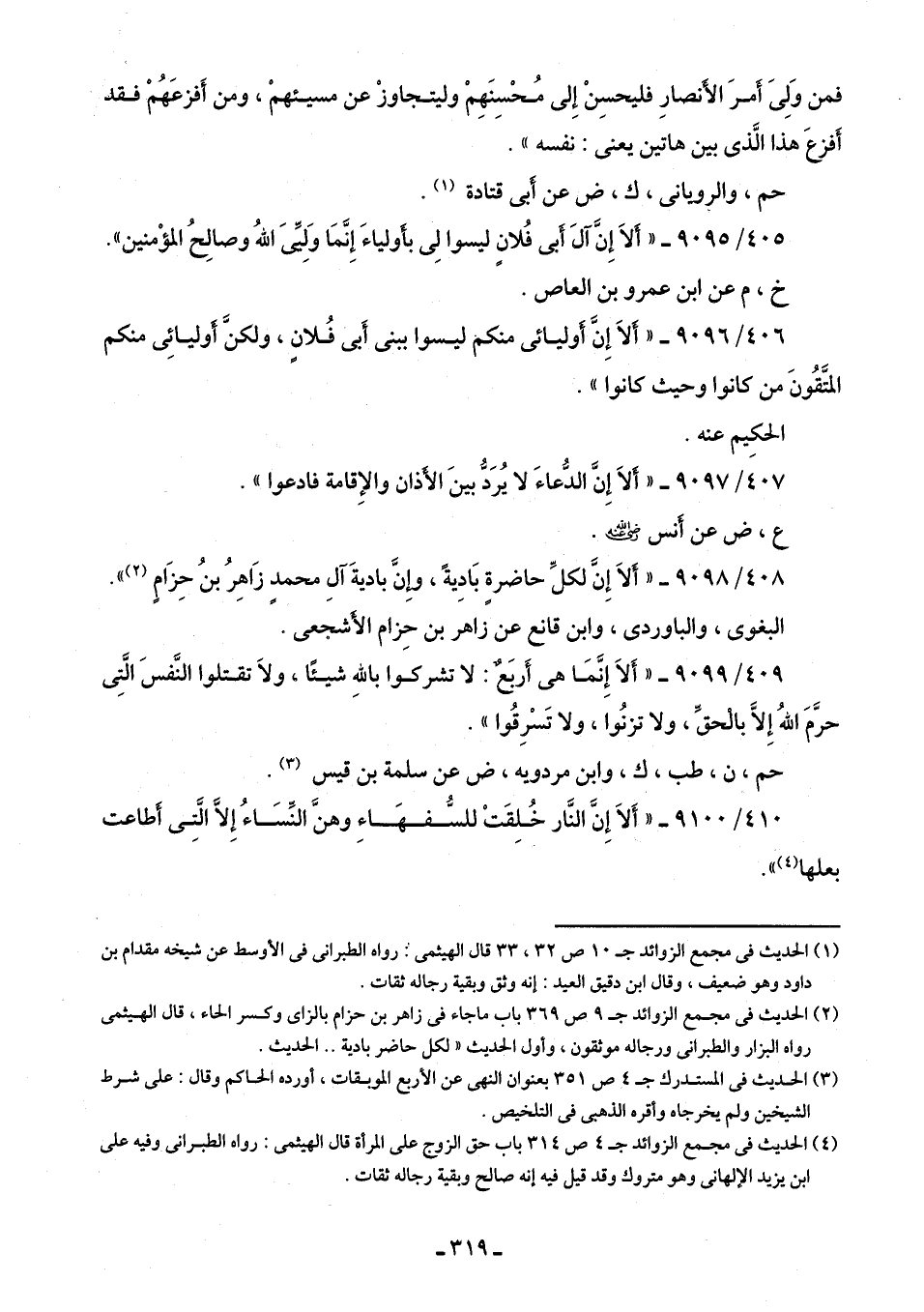 410/ 9100 - "أَلَا إِنَّ النَّار خُلِقَتْ للسُّفهَاءِ وهنَّ النِّسَاءُ إِلَّا الَّتِى أَطاعت بعلها (¬4) ".