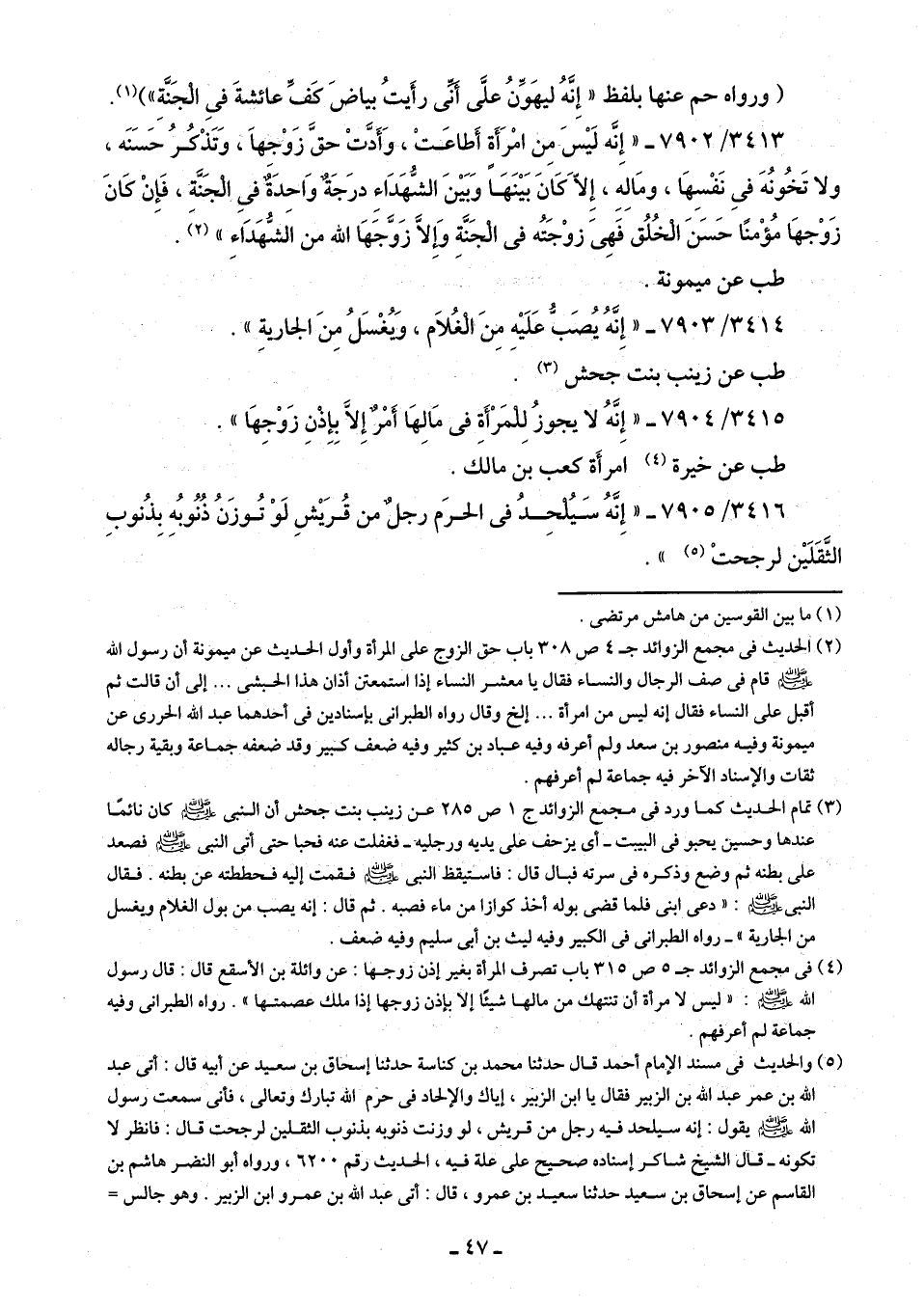 (¬4) في مجمع الزوائد جـ 5 ص 315 باب تصرف المرأة بغير إذن زوجها: عن وائلة بن الأسقع قال: قال رسول اللَّه -صلى اللَّه عليه وسلم-: "ليس لامرأة أن تنتهك من مالها شيئًا إلا بإذن زوجها إذا ملك عصمتها". رواه الطبرانى وفيه جماعة لم أعرفهم.
