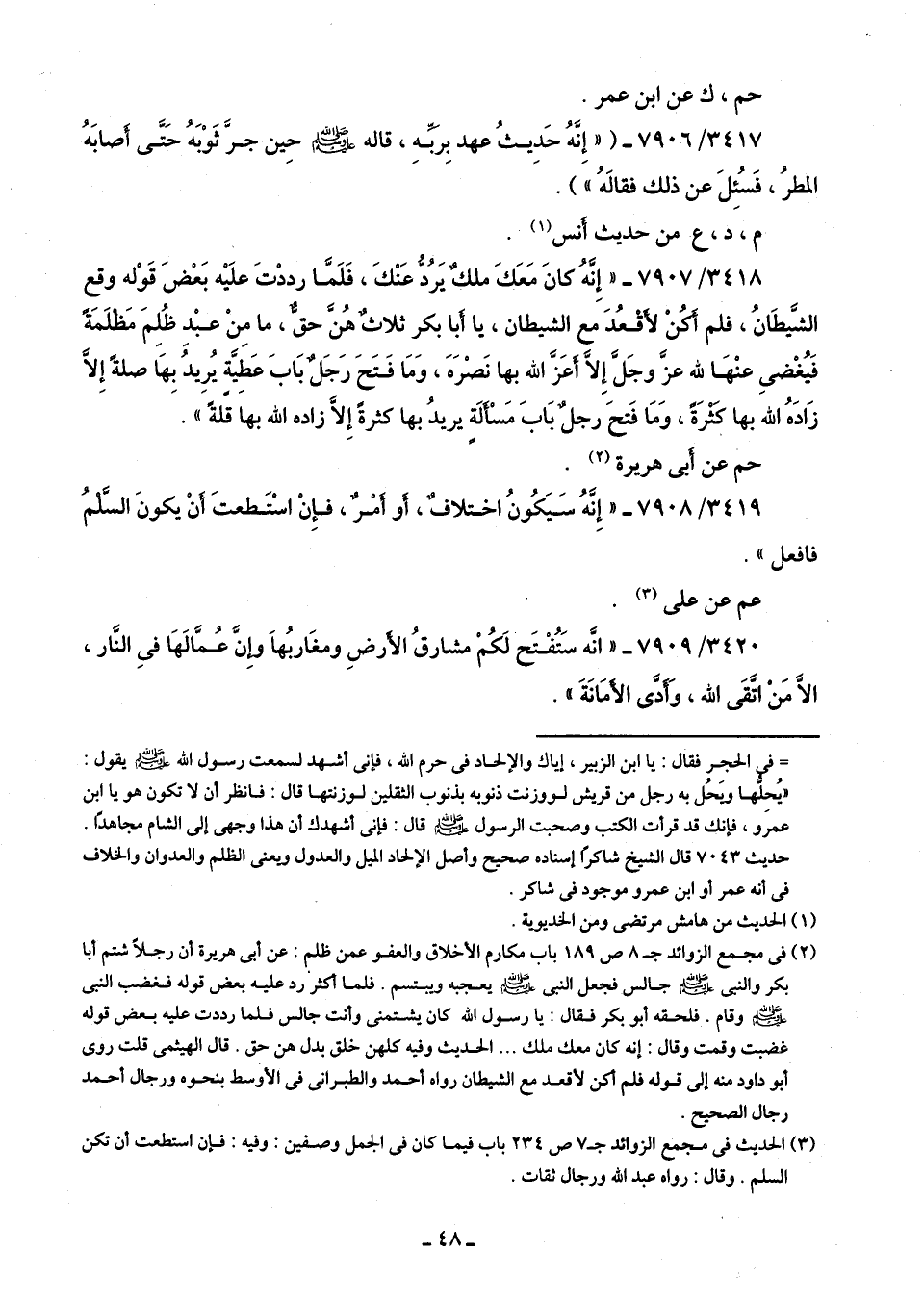 (¬3) الحديث في مجمع الزوائد جـ 7 ص 234 باب فيما كان في الجمل وصفين: وفيه: فإن استطعت أن تكن السلم. وقال: رواه عبد اللَّه ورجال ثقات.