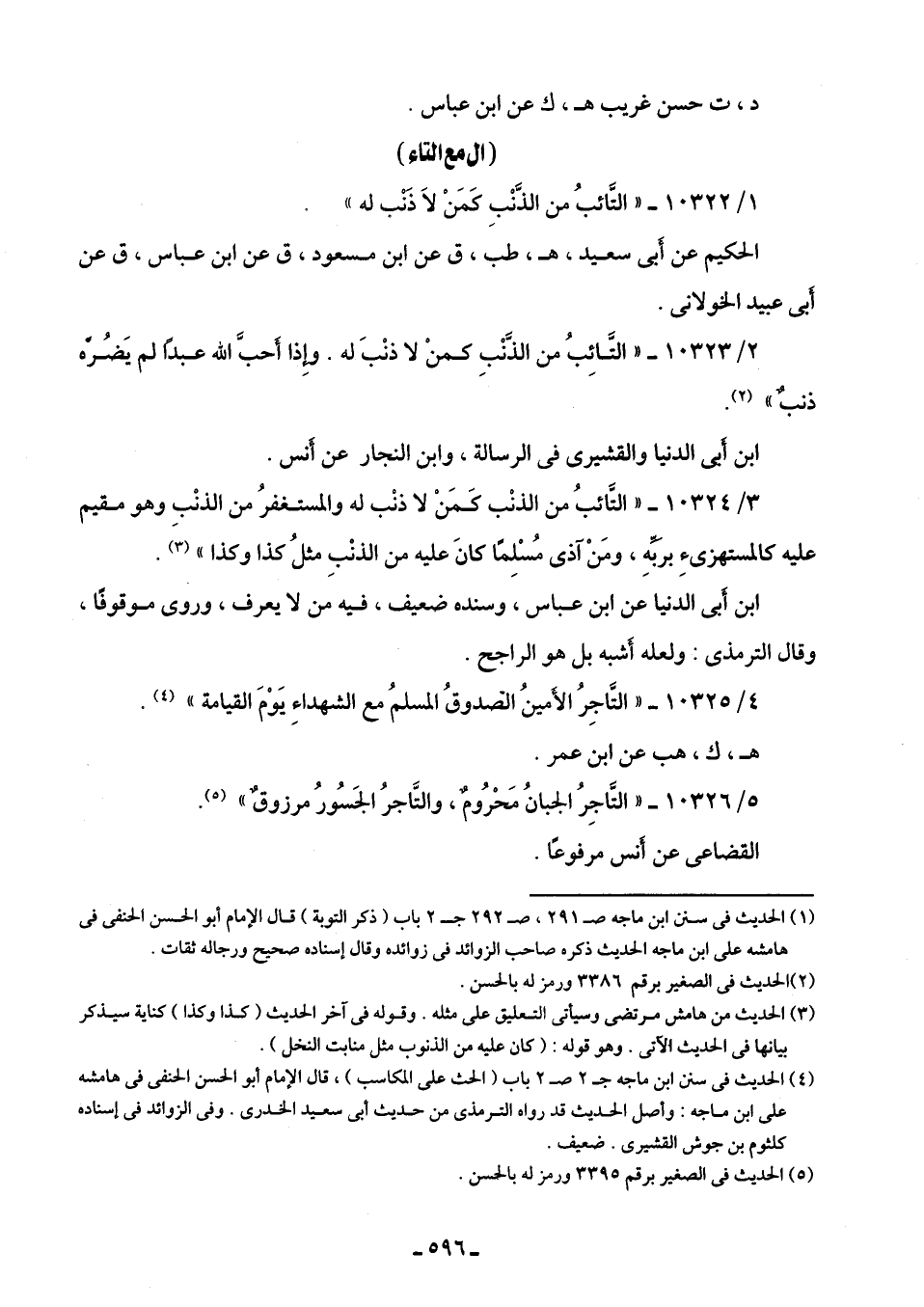 1/ 10322 - " التَّائبُ من الذَّنْبِ كَمَنْ لَا ذَنْب له" (¬1).