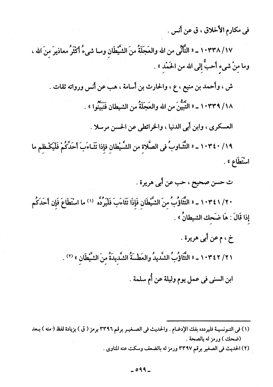 21/ 10342 - "التَّثَاؤُبُ الشَّديدُ والعَطسَةُ الشَّدِيدَةُ مِنَ الشَّيطَانِ" (¬2).