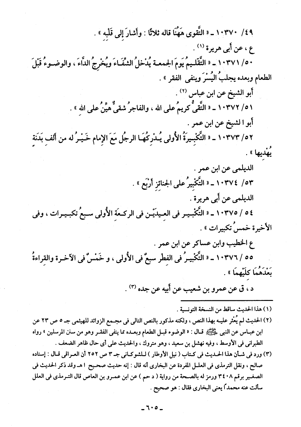 (¬3) ورد في شأن هذا الحديث في كتاب (نيل الأوطار) للشوكانى جـ 3 ص 252 أن العراقي قال: إسناده صالح، ونقل الترمذي في العلل المفردة عن البخاري أنه قال: إنه حديث صحيح اهـ وقد ذكر الحديث في الصغير برقم 3408 ورمز له بالصحة من رواية (د حم) عن ابن عمرو بن العاص قال الترمذي في العلل سألت عنه محمدًا يعني البخاري فقال: هو صحيح.