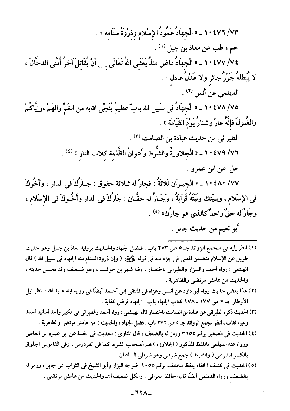 73/ 10476 - "الْجِهَادُ عَمُودُ الإِسْلامِ وذِرْوَةُ سَنَامِه".
