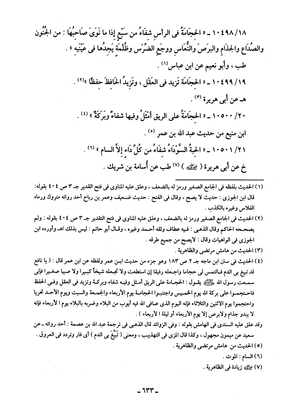 19/ 10499 - "الحِجَامَة تَزيد في العَقْل، وتَزِيدُ الحَافِط حِفظًا" (¬2).
