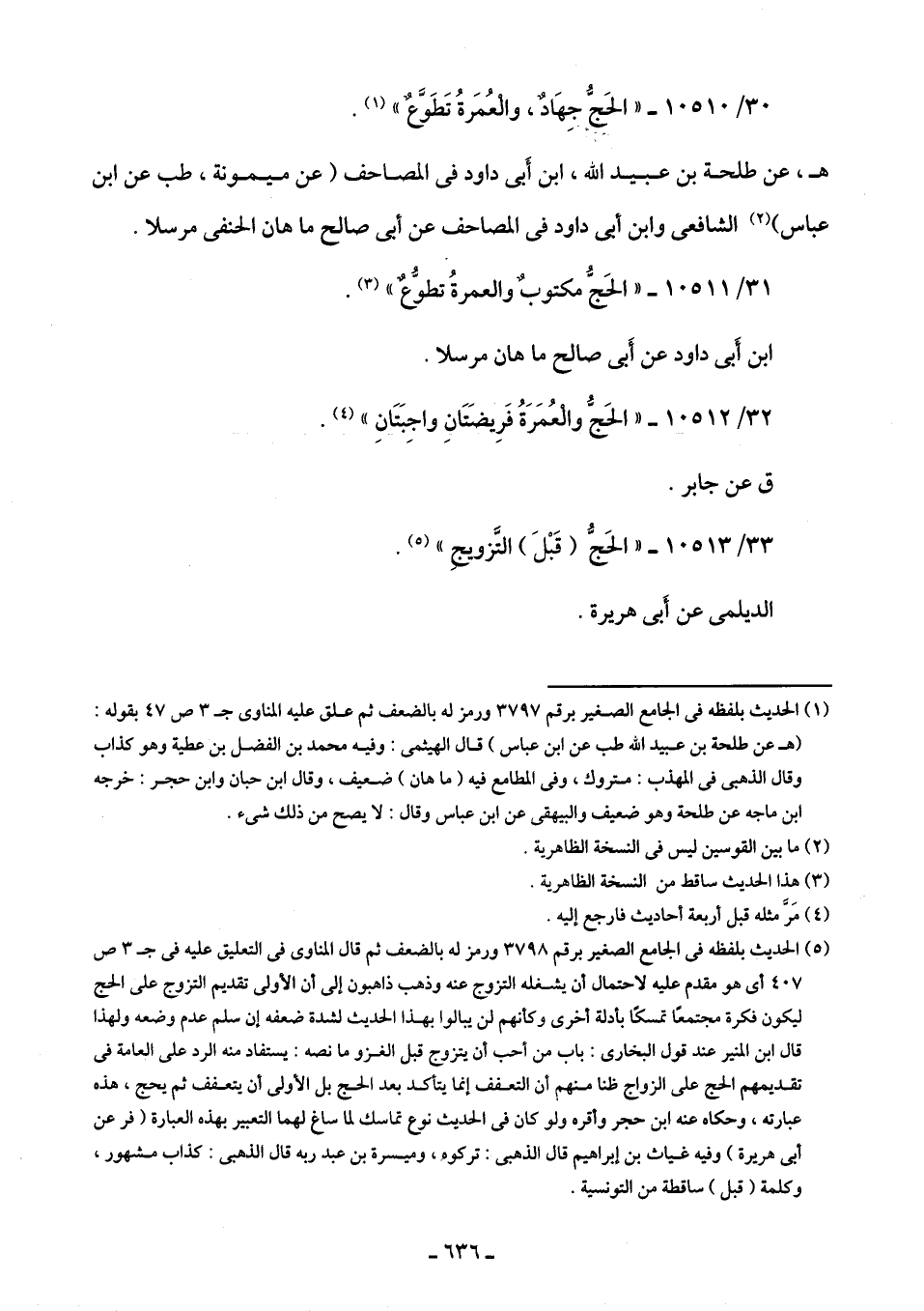 30/ 10510 - "الحَج جِهَاد، والْعُمَرةُ تَطَوَّعٌ" (¬1).