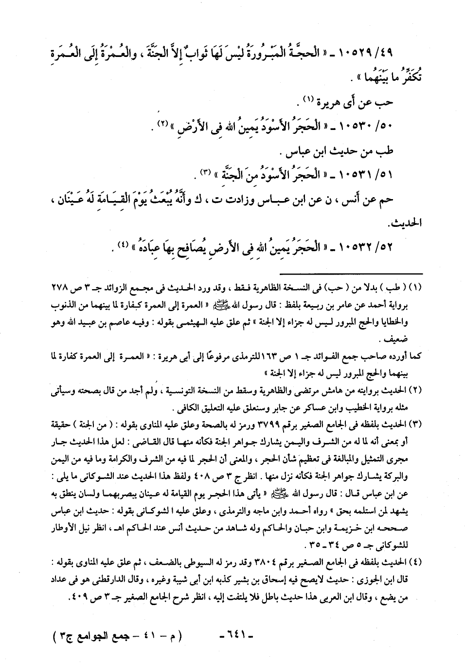 51/ 10531 - "الْحَجَرُ الأسْوَدُ مِنَ الْجَنَّةِ" (¬3).
