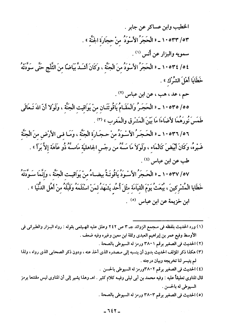 53/ 10533 - "الْحَجَرُ الأسْوَدُ مِنْ حِجَارَةِ الجَنَّةِ".
