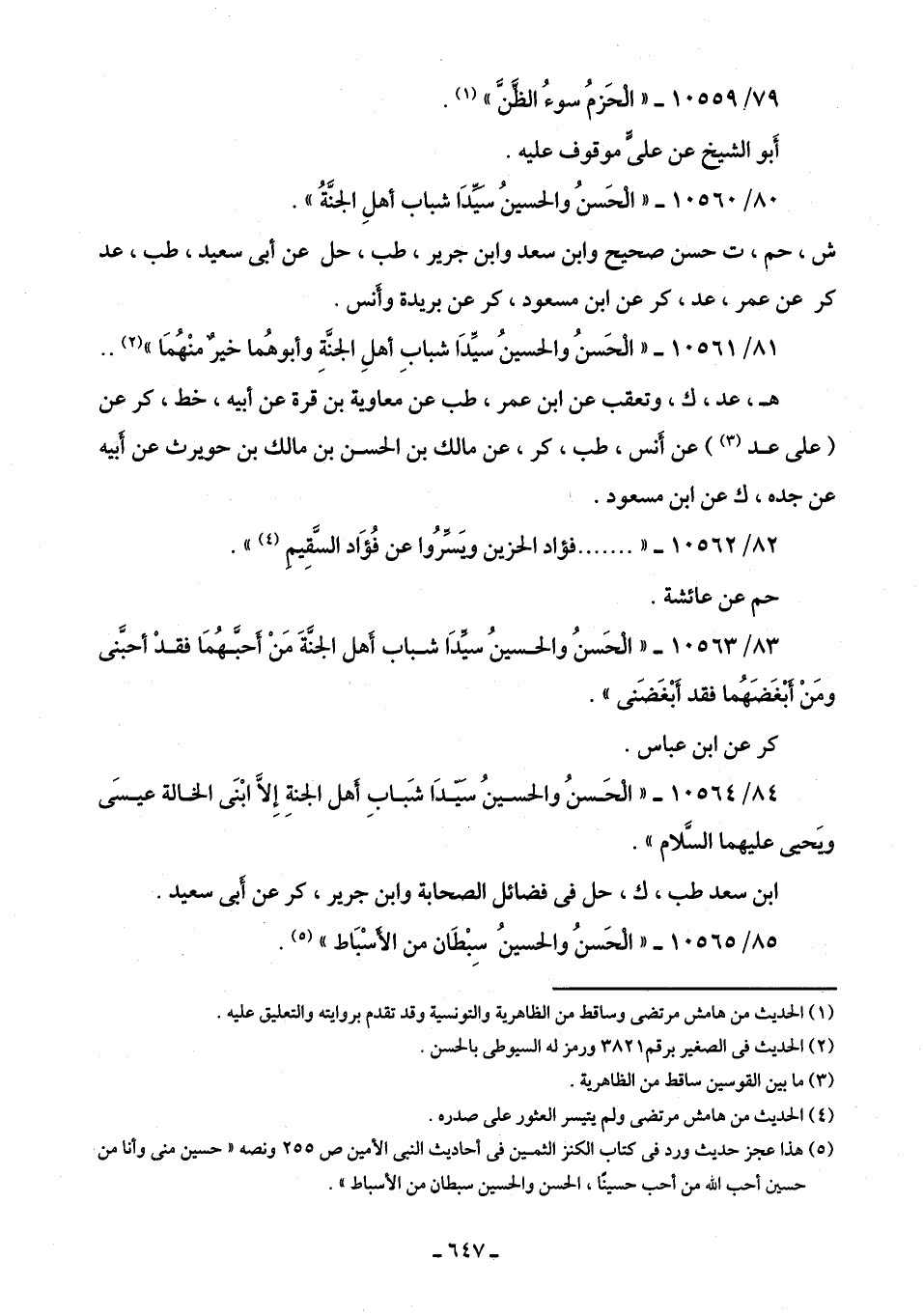 85/ 10565 - "الْحَسنُ والحسينُ سِبْطَان من الأَسْبَاط" (¬5).