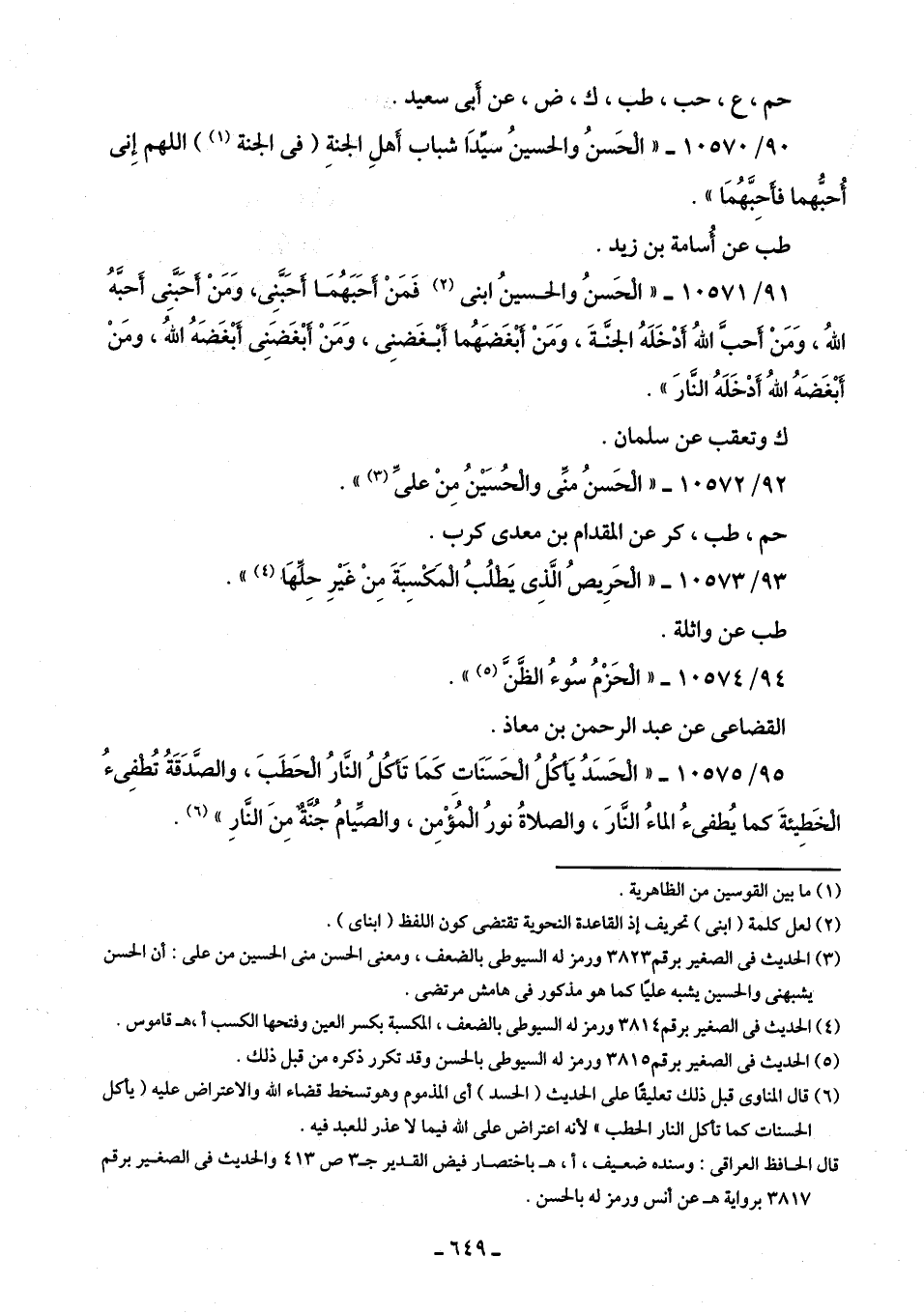 92/ 10572 - "الْحَسنُ منِّي والْحُسَينُ مِنْ عليِّ (¬3) ".