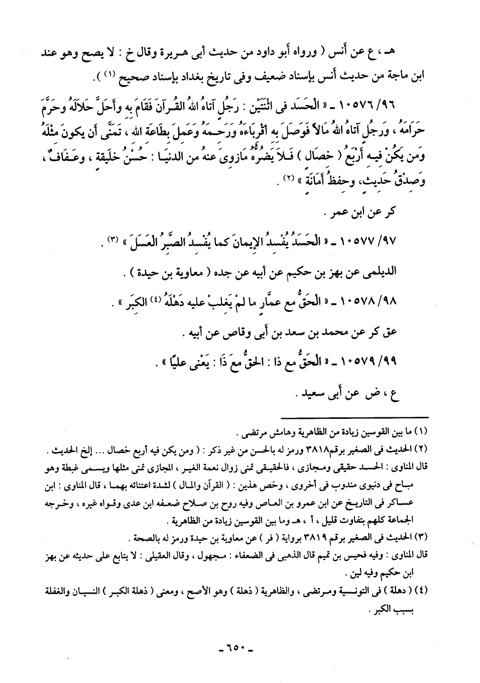 97/ 10577 - "الْحَسَدُ يُفْسِدُ الإِيمانَ كما يُفْسِدُ الصَّبِرُ الْعَسَلَ" (¬3).