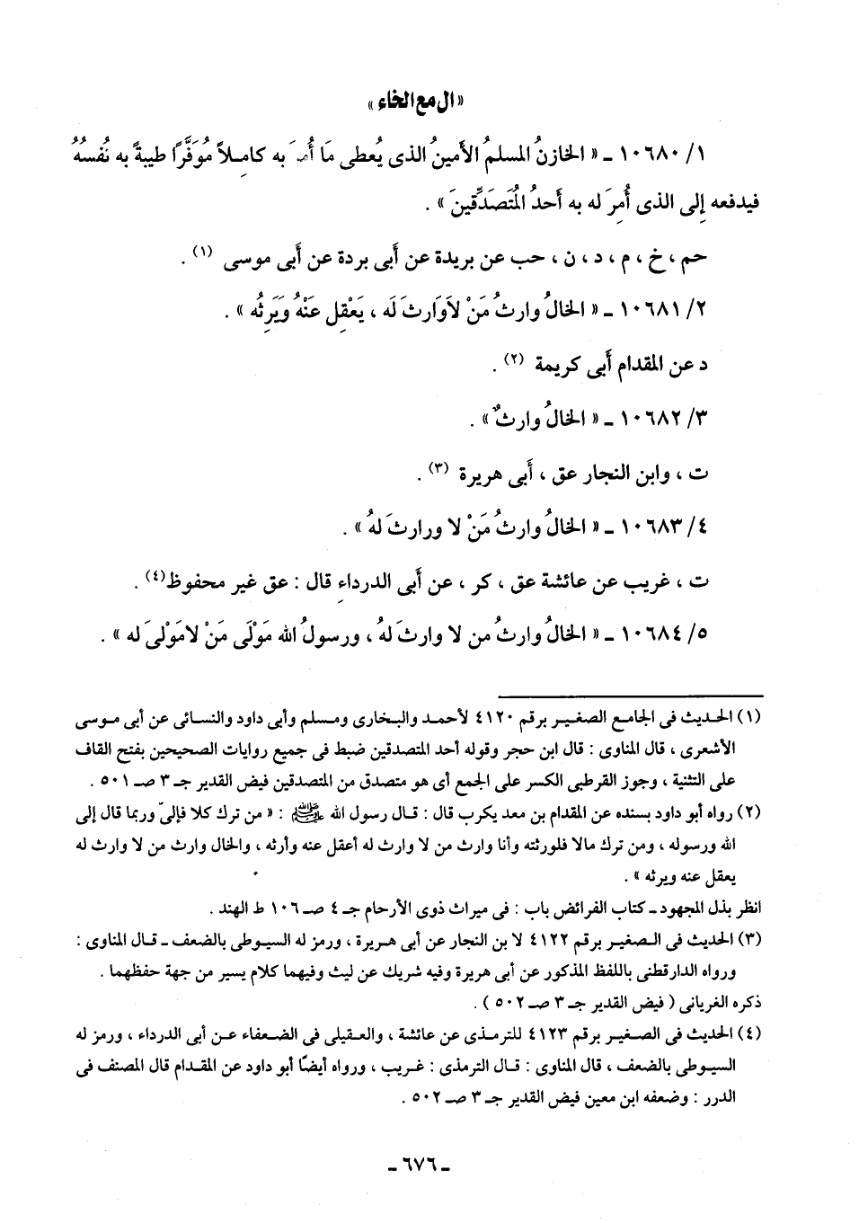 2/ 10681 - "الخالُ وارثُ مَنْ لا وَارثَ لَه، يَعْقِل عَنْهُ وَيرِثُه".