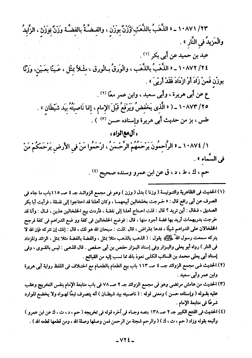 24/ 10872 - "الذَّهبُ بالذَّهَب، والوَرقُ بالورق، مِثْلًا بمِثْل، عَينًا بعَينٍ، وَزْنًا بوزْنٍ فَمنْ زَادَ أوْ ازْدَادَ فَقَدْ أَرْبَى".