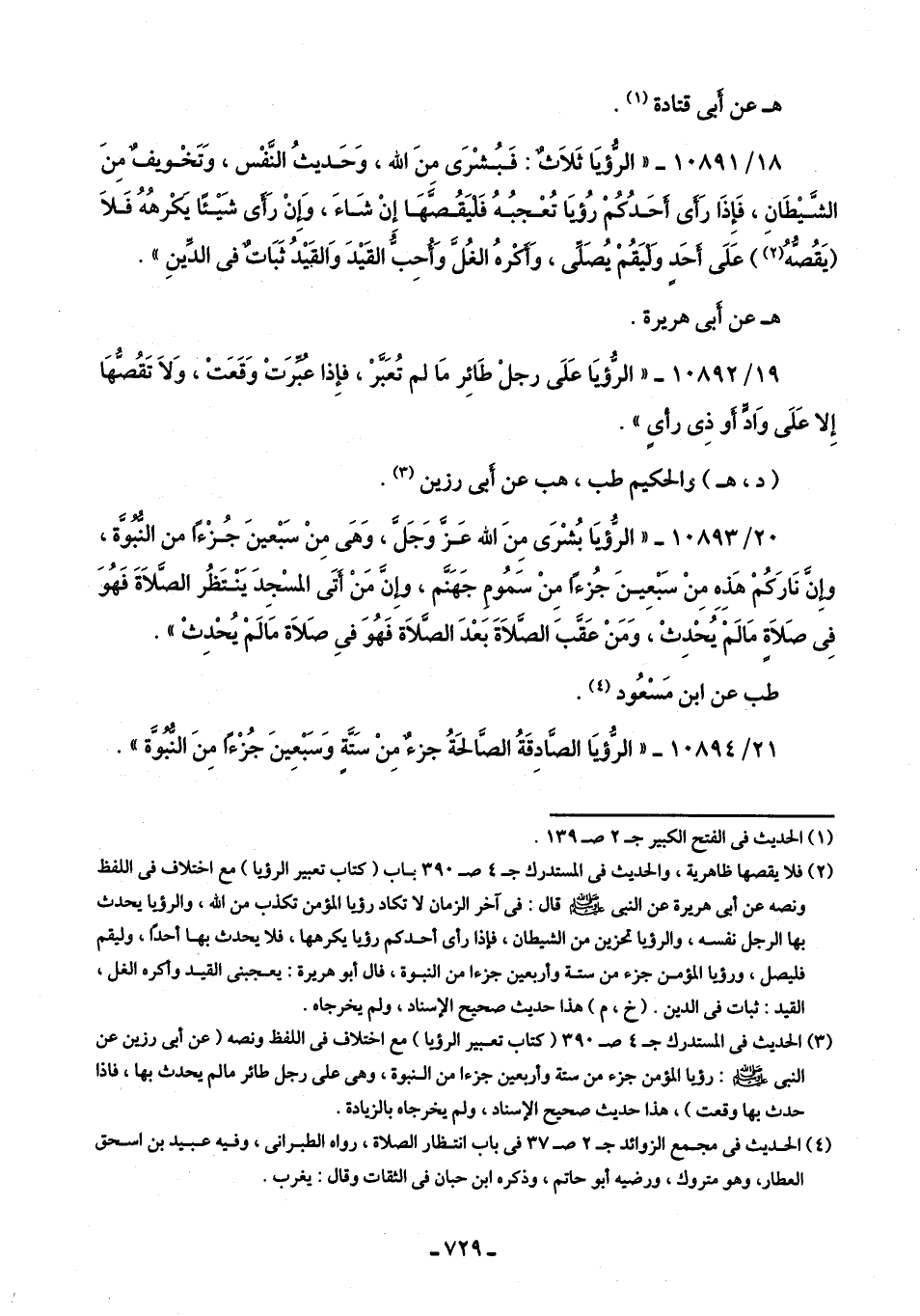21/ 10894 - "الرُّؤيَا الصَّادِقَةُ الصَّالحَةُ جزءٌ مِنْ سَتَّةٍ وَسَبْعِينَ جُزءًا مِنَ النُّبُوَّة".