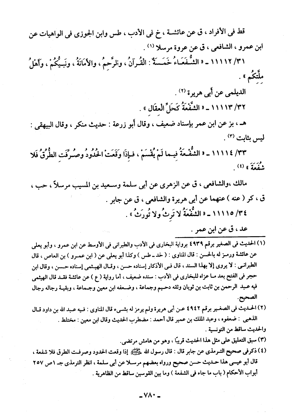 31/ 11112 - "الشُّفَعَاءُ خَمَسَةٌ: الْقُرآنُ، والرَّحِمُ، والأَمَانَةُ، ونَبيُّكُمْ، وَأَهْلُ مِلَّتِكُم".