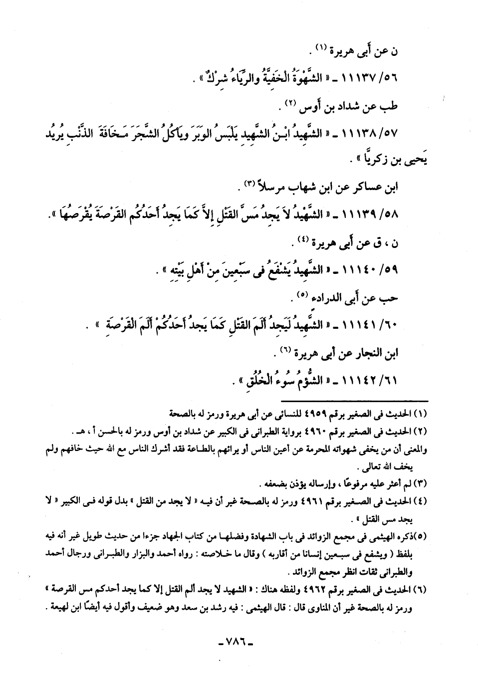 60/ 11141 - "الشَّهِيدُ لَيَجِدُ ألَمَ القَتْلِ كَمَا يَجدُ أحَدُكُمْ ألَمَ القَرْصَةِ".