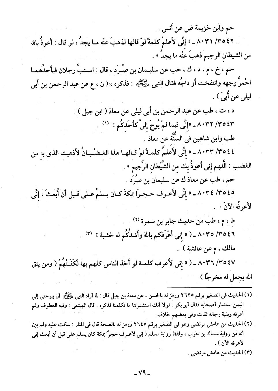 3544/ 8033 - "إِنِّى لأَعلمُ كلمةً لوْ قالها هذا الغضْبانُ لأَذهبت الذى بهِ من الغضب: الَّلهم إِنى أَعوذُ بِك مِن الشَّيْطانِ الرَّجيم".