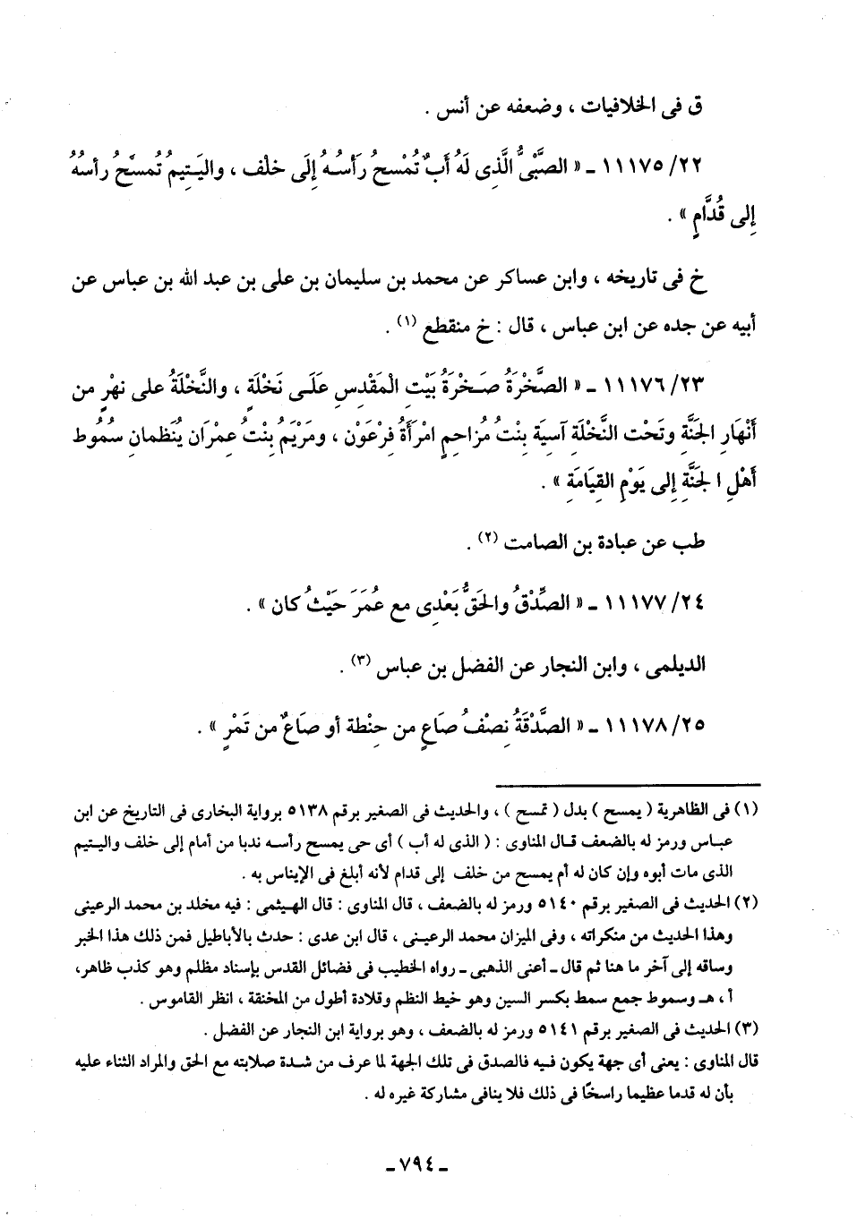 (¬3) الحديث في الصغير برقم 5141 ورمز له بالضعف، وهو برواية ابن النجار عن الفضل.