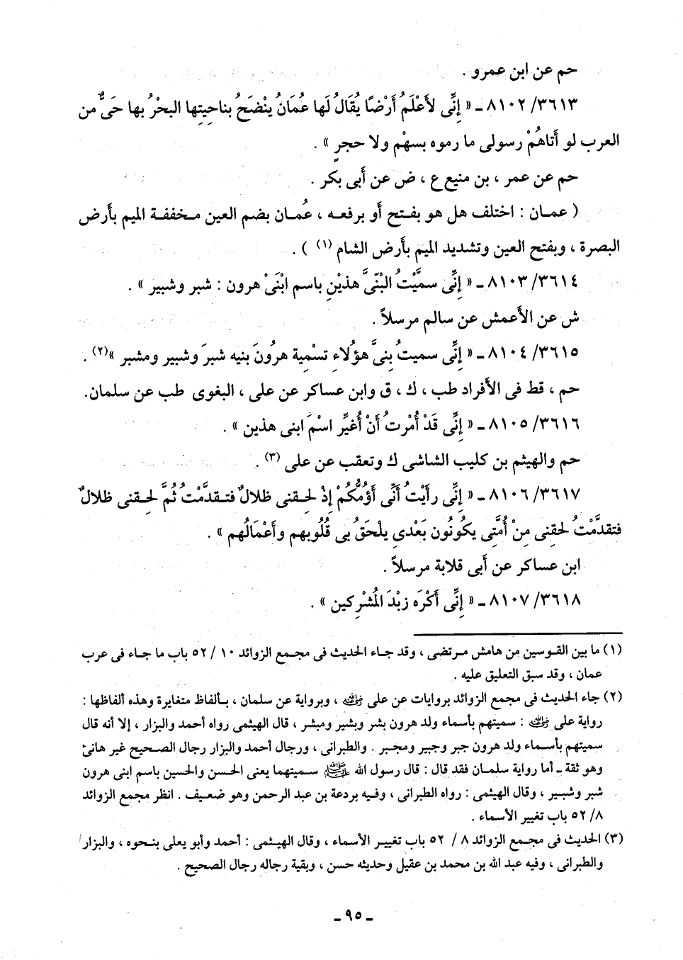 3615/ 8104 - "إِنِّى سميتُ بِنىَّ هؤُلاءِ تسْمِية هرُونَ بنيه شبرَ وشبير ومشبر" (¬2).