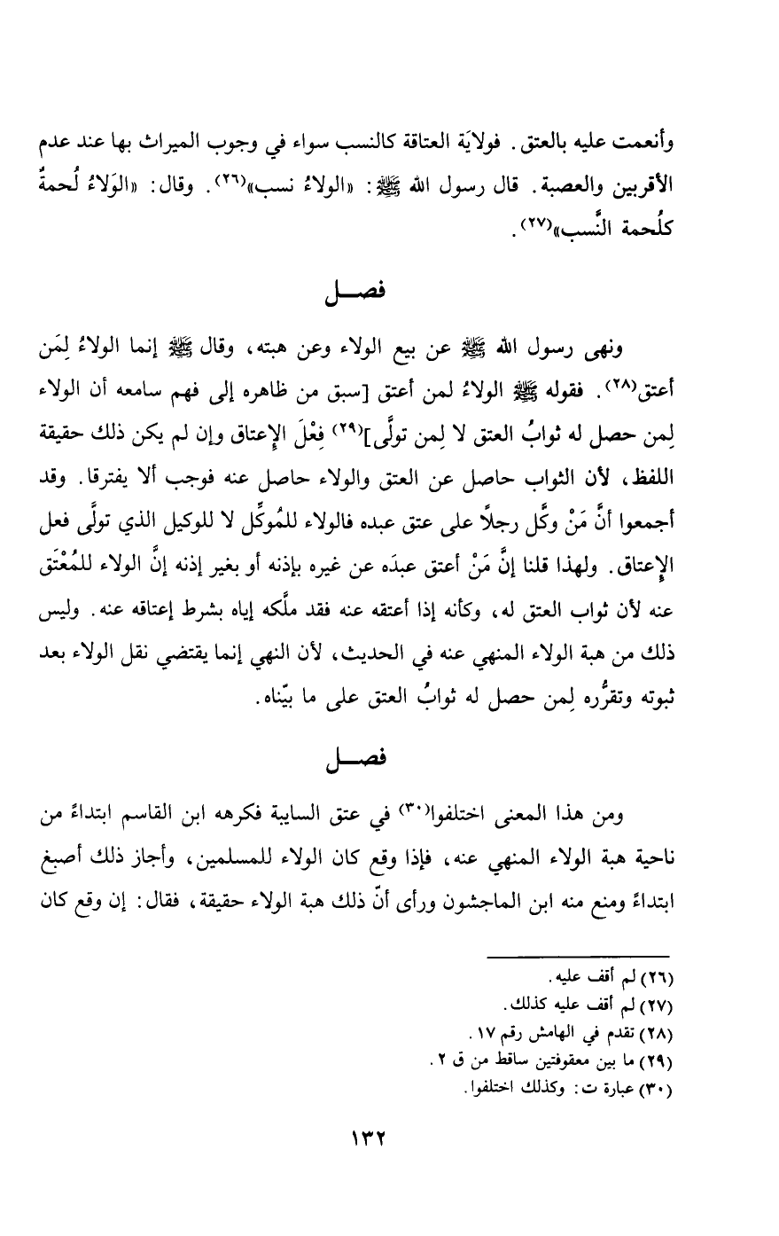 وأنعمت عليه بالعتق. فولاية العتاقة كالنسب سواء في وجوب الميراث بها عند عدم الأقربين والعصبة. قال رسول الله - صَلَّى اللَّهُ عَلَيْهِ وَسَلَّمَ -: «الولاء نسب». وقال: «الولاء لحمة كلحمة النسب».