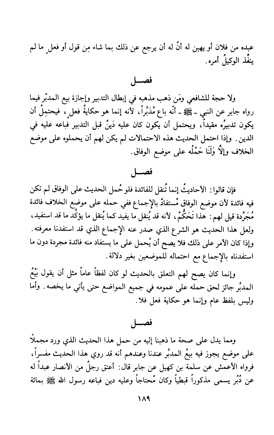 وإنما كان يصح لهم التعلق بالحديث لو كان لفظا عاما مثل أن يقول: بيع المدبر جائز لحق حمله على عمومه في جميع المواضع حتى يأتي ما يخصه. وأما وليس بلفظ عام وإنما هو حكاية فعل فلا.