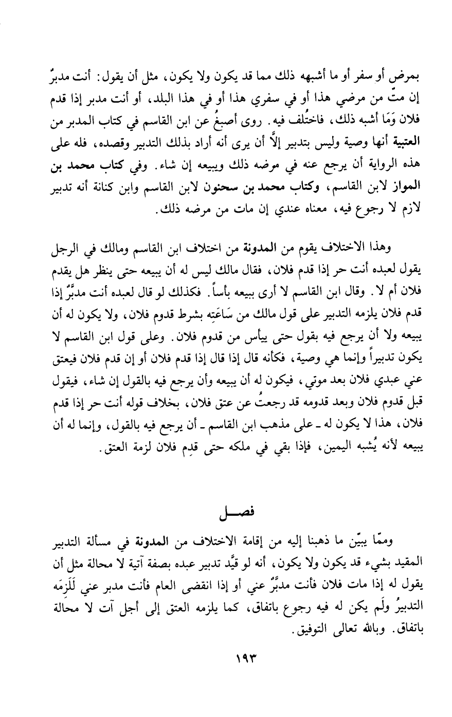 وهذا الاختلاف يقوم من المدونة من اختلاف ابن القاسم ومالك في الرجل يقول لعبده: أنت حر إذا قدم فلان، فقال مالك: ليس له أن يبيعه حتى ينظر هل يقدم فلان أم لا. وقال ابن القاسم: لا أرى ببيعه بأسا. فكذلك لو قال لعبده: أنت مدبر إذا قدم فلان يلزمه التدبير على قول مالك من ساعته بشرط قدوم فلان، ولا يكون له أن يبيعه ولا أن يرجع فيه بقول حتى ييأس من قدوم فلان. وعلى قول ابن القاسم لا يكون تدبيرا وإنما هي وصية، فكأنه قال إذا قال: إذا قدم فلان أو إن قدم فلان فيعتق عني عبدي فلان بعد موتي، فيكون له أن يبيعه وأن يرجع فيه بالقول إن شاء، فيقول قبل قدوم فلان وبعد قدومه: قد رجعت عن عتق فلان، بخلاف قوله: أنت حر إذا قدم فلان، هذا لا يكون له- على مذهب ابن القاسم - أن يرجع فيه بالقول، وإنما له أن يبيعه لأنه يشبه اليمين، فإذا بقي في ملكه حتى قدم فلان لزمه العتق.