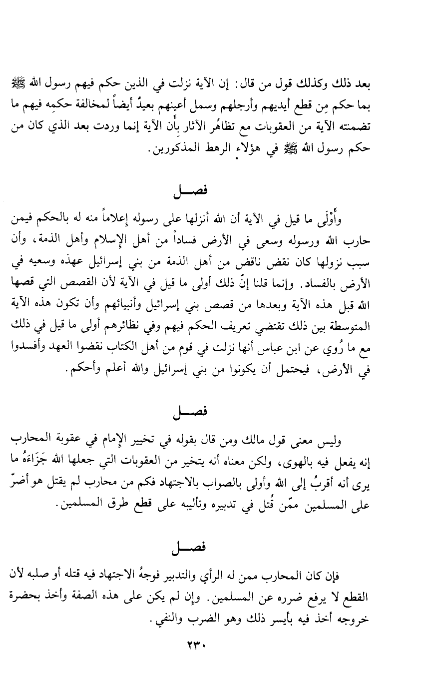وليس معنى قول مالك ومن قال بقوله في تخيير الإمام في عقوبة المحارب إنه يفعل فيه بالهوى، ولكن معناه أنه يتخير من العقوبات التي جعلها الله جزاءه ما يرى أنه أقرب إلى الله وأولى بالصواب بالاجتهاد فكم من محارب لم يقتل هو أضر على المسلمين ممن قتل في تدبيره وتأليبه على قطع طرق المسلمين.